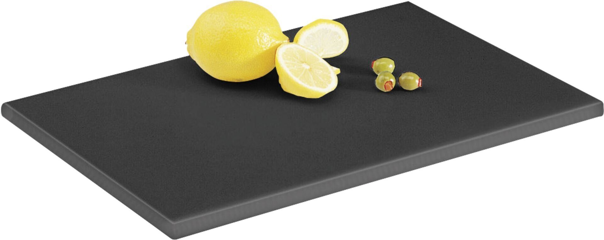 PE 500, ohne Saftrille, mit Antirutsch-Füßchen. Stärke 1,2 cm. Bis 80°C temperaturbeständig. Schneidbretter dürfen beim Spülvorgang nicht geklemmt werden. Keine heißen Gefäße aufstellen, kann zum Verziehen der Platten führen.