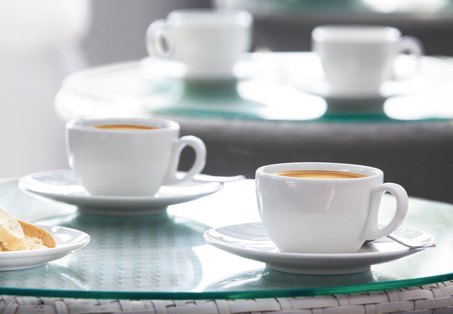 BARISTA bietet ein großes Spektrum an Tassen aller Größen, die aus unserem exklusiven Material hergestellt sind, das die Temperatur besonders gut hält. Durch ihre ergonomischen Henkel können sie bequem gehalten und sechs von sieben Tassen können mit derselben Untertasse kombiniert werden, so dass Anschaffungs- und Lagerkosten in Grenzen gehalten werde