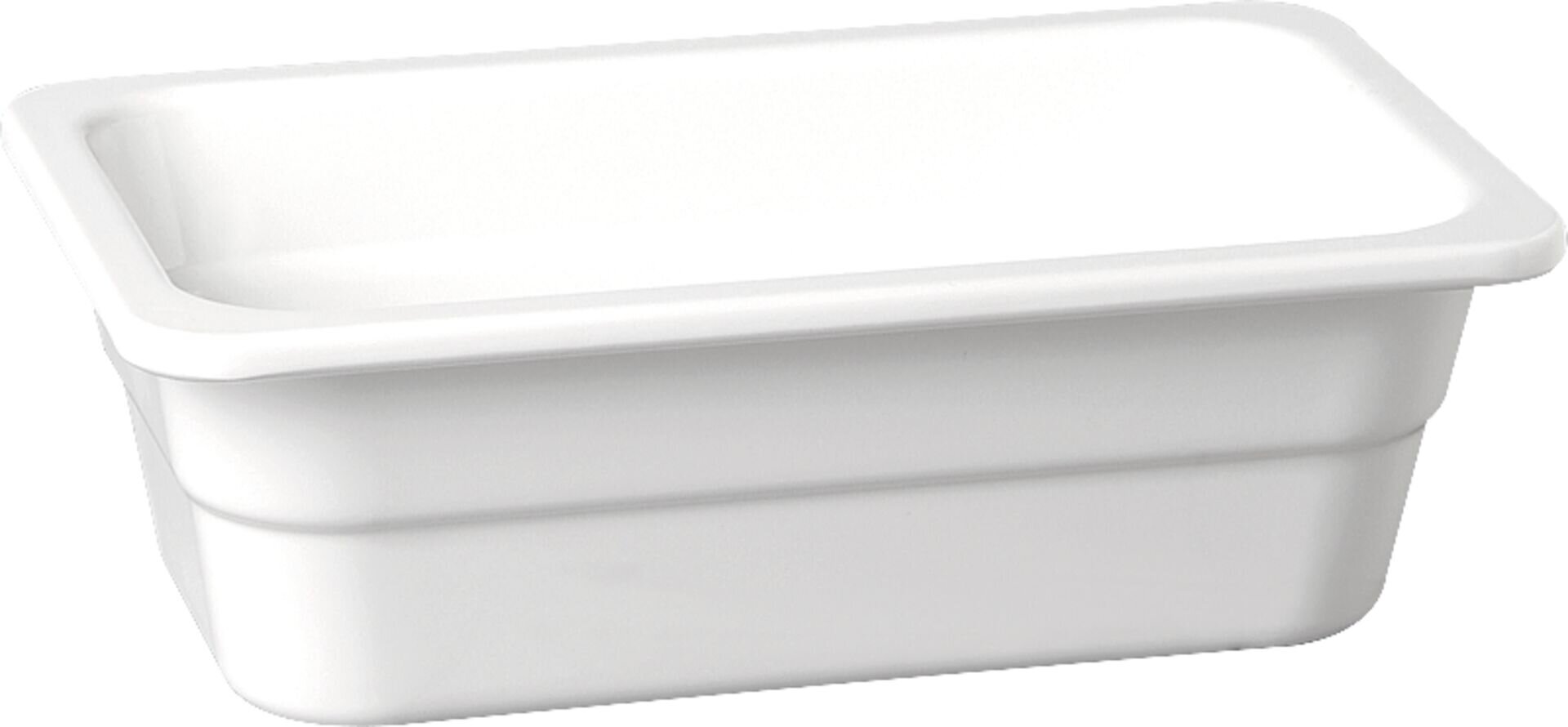 • -30 °C bis +70 °C • extrem bruchsicher • nicht koch- und backgeeignet Melamin, weiß, stapelbar, spülmaschinengeeignet. GN: 1/2 Tiefe (mm): 65 Inhalt (Liter): 3,4 LxB in cm: 32,5x26,5