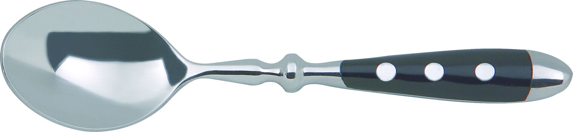 Chrom-Nickel-Stahl 18/10, rostfrei, geschmiedet. 5 mm stark. Kunststoff Griffschalen, 3-fach genietet. Spülmaschinengeeignet. Qualitätsbesteck. Sehr hohe Stabilität.