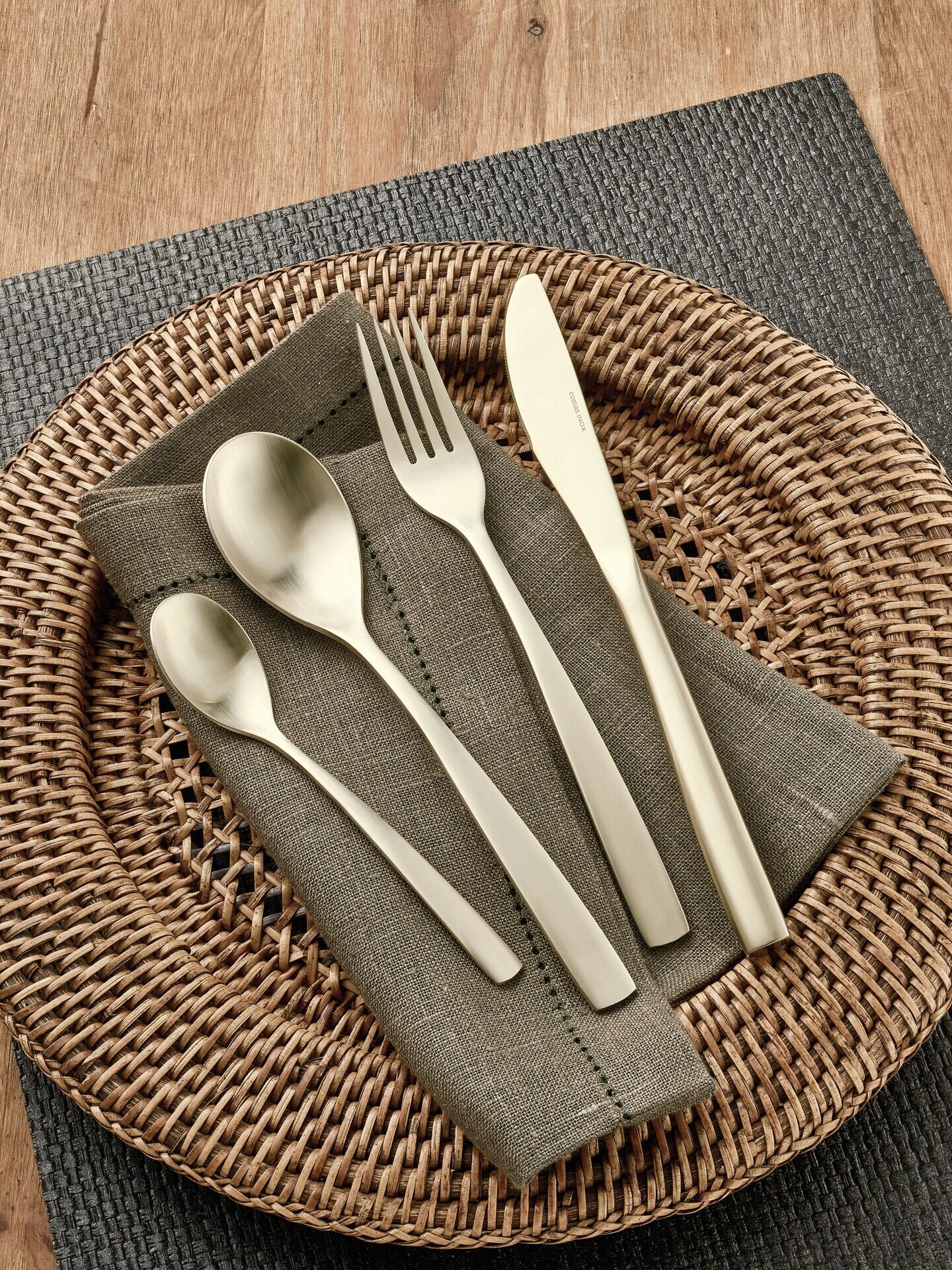 Chromstahl 18/0, rostfrei, mattes Design, 3,0 mm stark, PVD beschichtet, Die Farben schwarz, kupfer u. champagner sind perfekt miteinander kombinierbar. Bitte Pflegehinweis beachten. Dieser befindet sich auf der Verpackung.