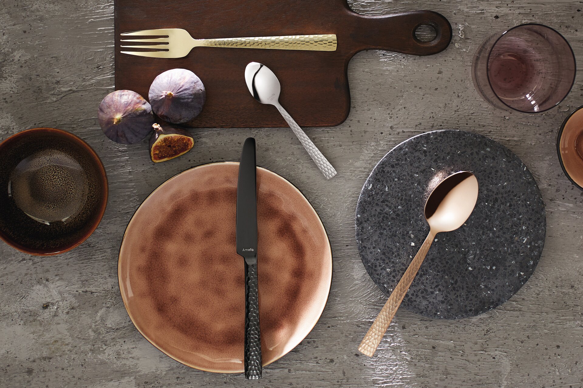 Felicity in Champagner – mit gehämmerter Oberfläche und gerader Form verleiht dieses Besteck deinem Restaurant einen eleganten Look. Passt besonders gut zu leichten, hellen Interieurs oder als Kontrast zu dunklen Möbeln.