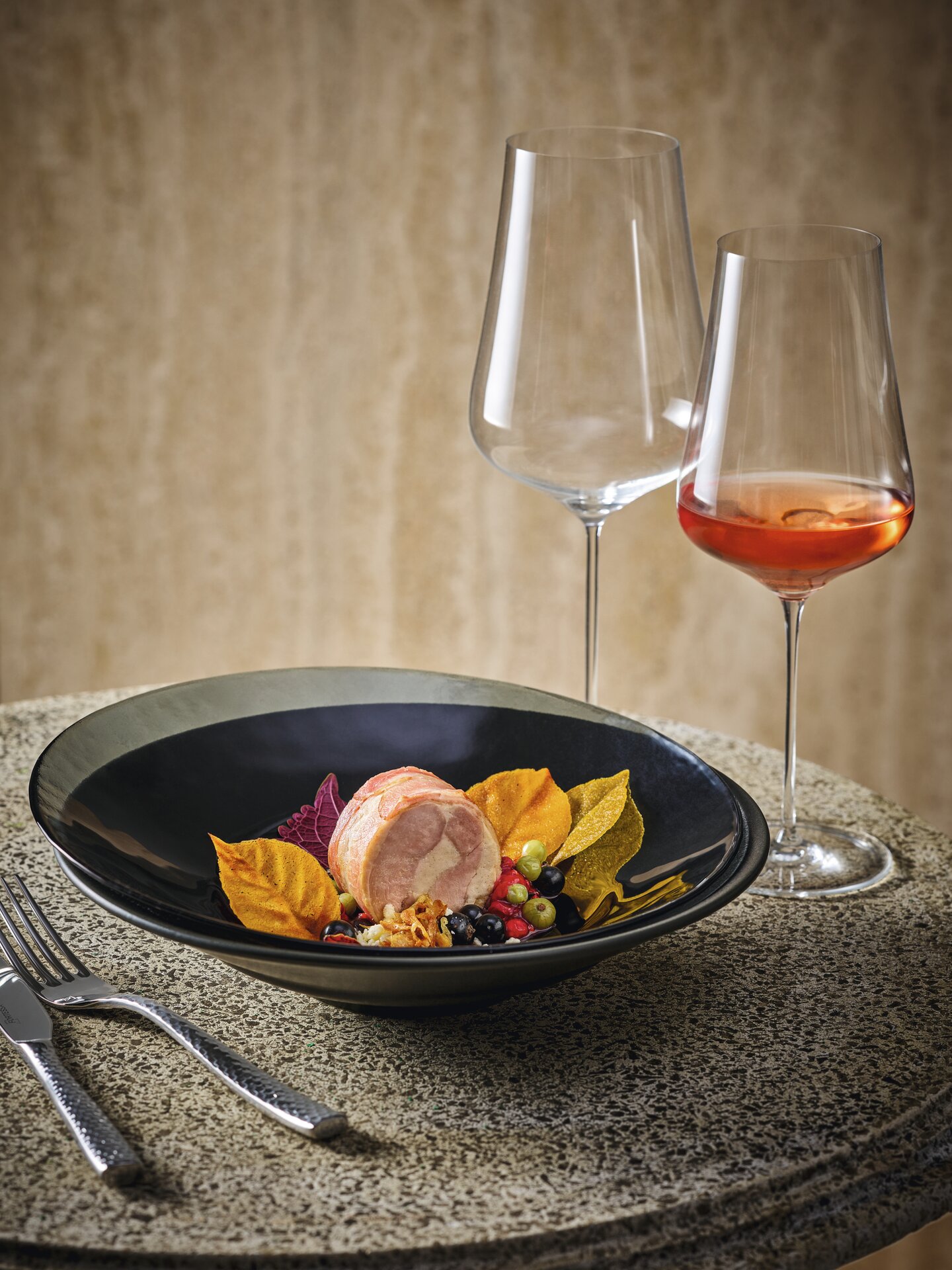 Traditionelle Handarbeit, die mit modernster Maschinenpräzision verschmilzt. Während das weiche und besonders feine Handgefühl des hauchdünnen Stiels von Menschenhand geschaffen wurde, stammt die eindrucksvolle Stabilität und die elegante Kuppa in dieser Serie von Maschinen. Eins geworden für Bordeaux und Burgunder, leichte und kräftige Weißweine sowie für Champagner.