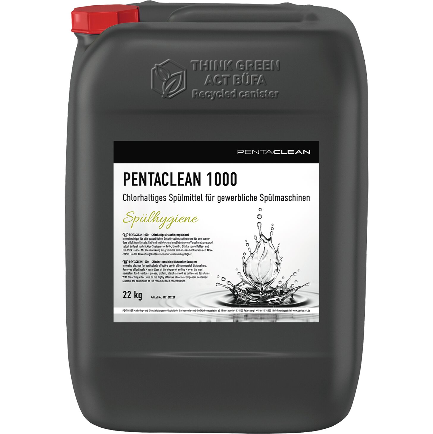 PENTACLEAN 1000 ist ein flüssiges, nicht schäumendes Reinigungskonzentrat für die gewerbliche Anwendung in Großküchen und sonstigen lebensmittelverarbeitenden Betrieben. Auch bei sehr hoher Wasserhärte werden hervorragende Reinigungsergebnisse erzielt. Spülgut aus Porzellan, Kunststoff, Edelstahl und Glas wird bei korrekter Dosierung rückstandsfrei und schonend gereinigt. Durch den hohen Gehalt an wasserhärtebindenden Substanzen ist PENTACLEAN 1000 auch in Maschinen, die ohne Enthärtungsanlagen arbeiten, sehr gut einsetzbar und die Verkalkung der Geräte und Heizstäbe wird wirksam verhindert. PENTACLEAN 1000 ist auch aluminiumgeeignet und wird in gewerblichen Geschirrspülmaschinen von Großküchen und zur Kisten-, Behälter- sowie Teilereinigung in Durchlaufanlagen lebensmittelverarbeitender Betriebe eingesetzt.