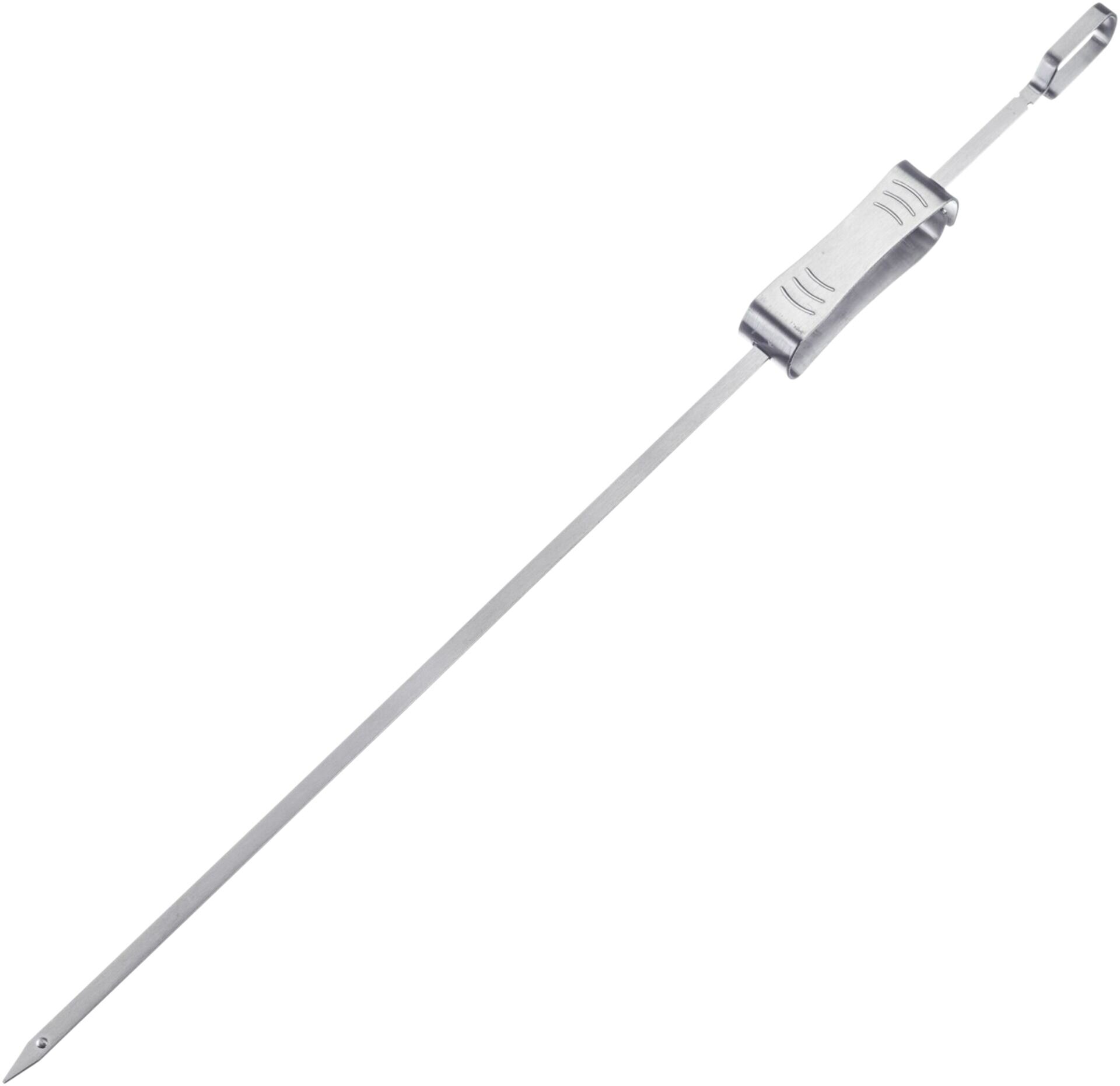 Grillspieß aus Edelstahl mit Schieber für leichtes Abstreifen des Bratgutes. Spülmaschinengeeignet.