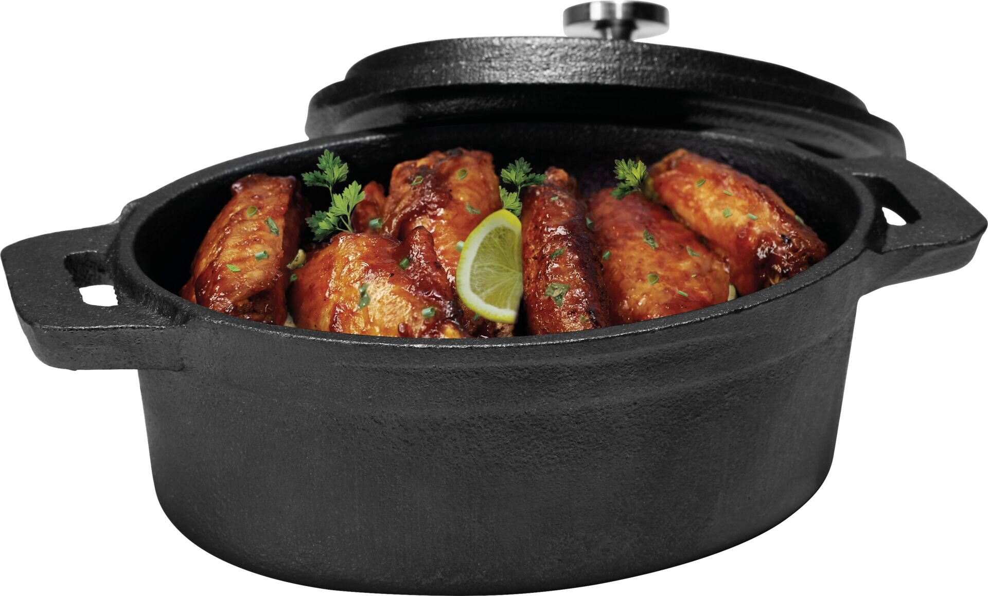 Pfännchen und Töpfchen zum Servieren Gusseisen. Nicht spülmaschinengeeignet. Ausführung: oval mit Deckel und zwei Kurzgriffen LxB in cm: 12,0x9,0