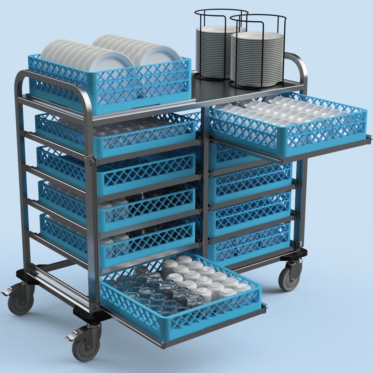 › Schubladen passend für Spülmaschinenkörbe 500 x 500 mm, Auffangschalen für Körbe separat erhältlich