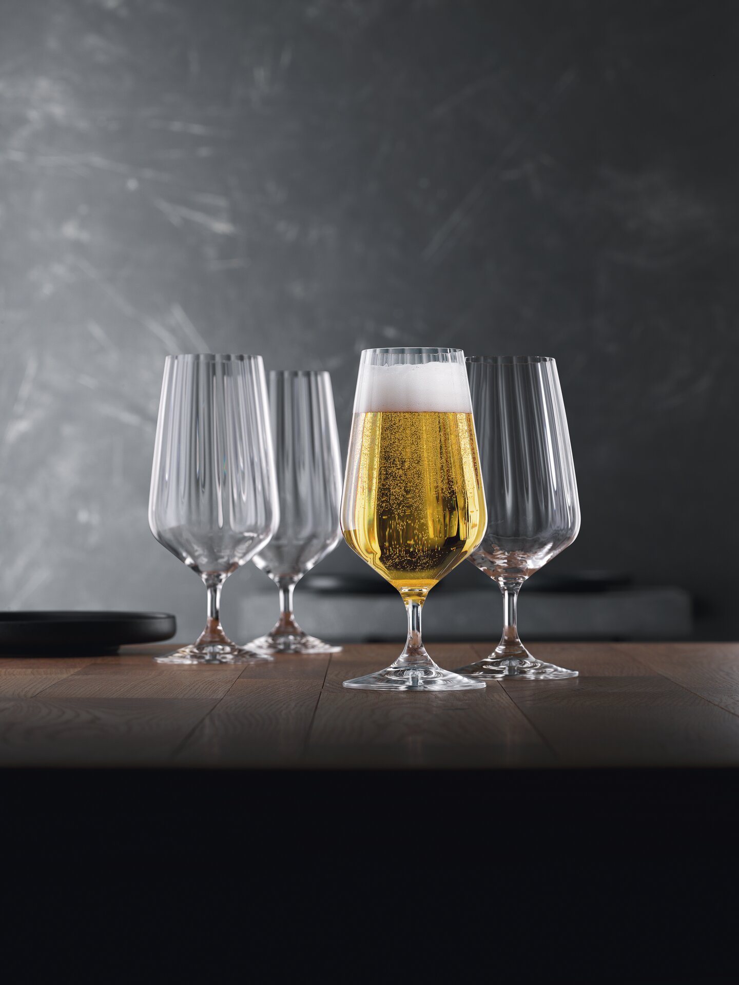 Das Bierglas ist ideal, um die Farbe zu entfalten, das Aroma zu entwickeln und den Geschmack von Bieren zu verlängern. Dieses tulpenförmige Glas fängt die gesamte Bandbreite der Aromen ein, leitet überschüssige Kohlensäure ab und hilft, die Schaumkrone des Bieres zu erhalten. Die SPIEGELAU LifeStyle Gläser sind überall dort zu Hause, wo sich Lifestyle und Mode treffen. Ihre moderne Diamantenform wird durch das lineare Dekor unterstrichen. Mit Brillanz und spannenden optischen Effekten tragen diese Kristallgläser zu einem hochwertigen Ambiente auf jedem Esstisch bei.