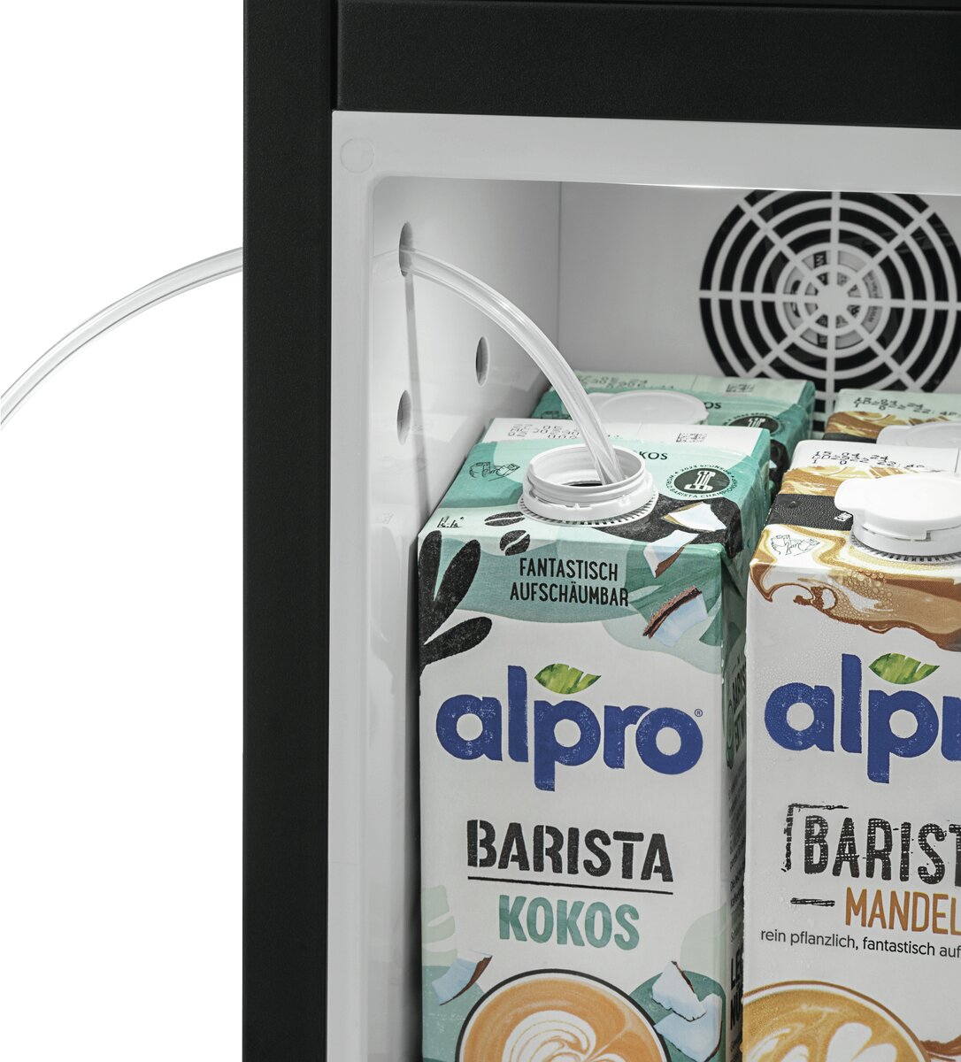 Ob für Cappuccino, Café au lait oder Latte Macchiato – Der praktische Milchkühlschrank bietet mit seinen seitlichen Schlauchöffnungen direkten Zugriff auf gekühlte Milch. Die Milch wird hy gienisch kühl gelagert und kann bei Bedarf über den Milchschlauch des Vollautomaten direkt für die Kaffeezubereitung gezogen werden.