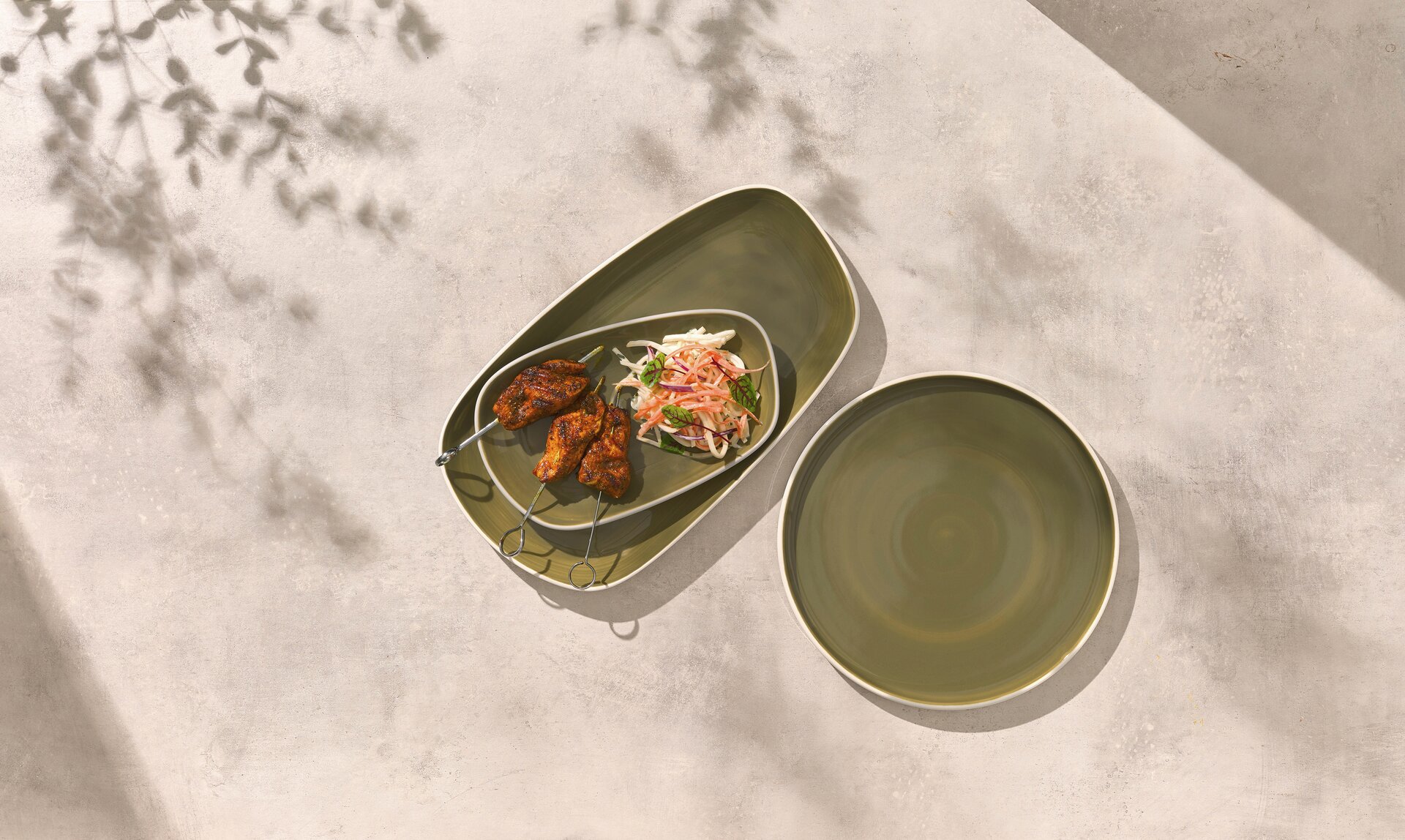 Nyx bietet ein kontrastreiches schwarzes Farbfeld, das die Farbtöne der vom Küchenchef kreierten Speisen verstärkt. Dies zieht den Blick des Gastes auf sich und verleiht der Präsentation Dynamik und Dramatik. Das randlose Profil bietet dem Küchenchef eine optimale Servierfläche, auf der er seine Fähigkeiten und seine Kreativität optimal zur Geltung bringt.