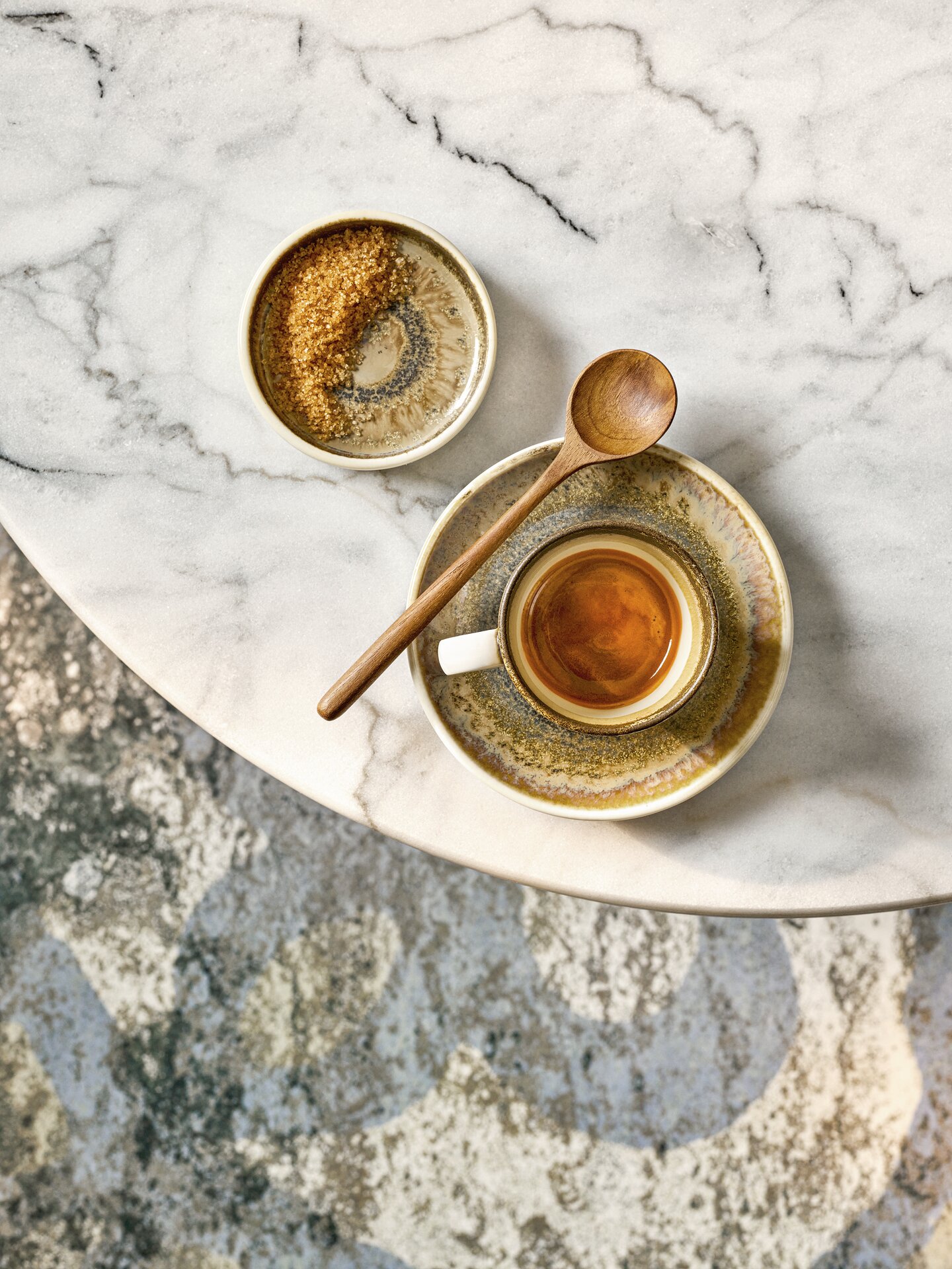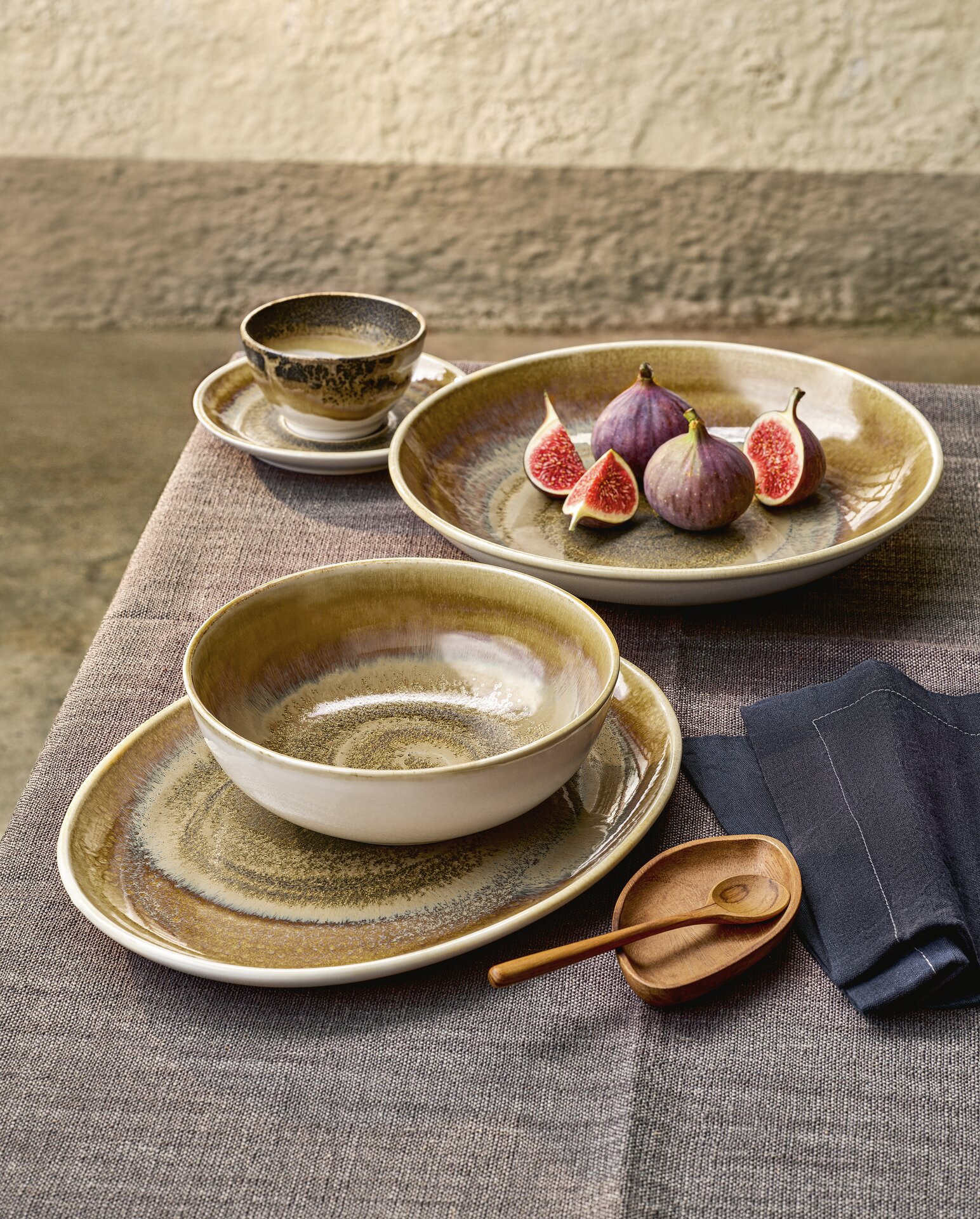 Die Grün-, Braun- und Blautöne erinnern an die mediterrane Pflanzenwelt, an Meer und Terracotta. Reaktive Glasuren sorgen für besondere Effekte und handwerkliche Unikate. Die Artikel von PERFECT MATCH sind in fünf kombinierbaren Farben erhältlich.