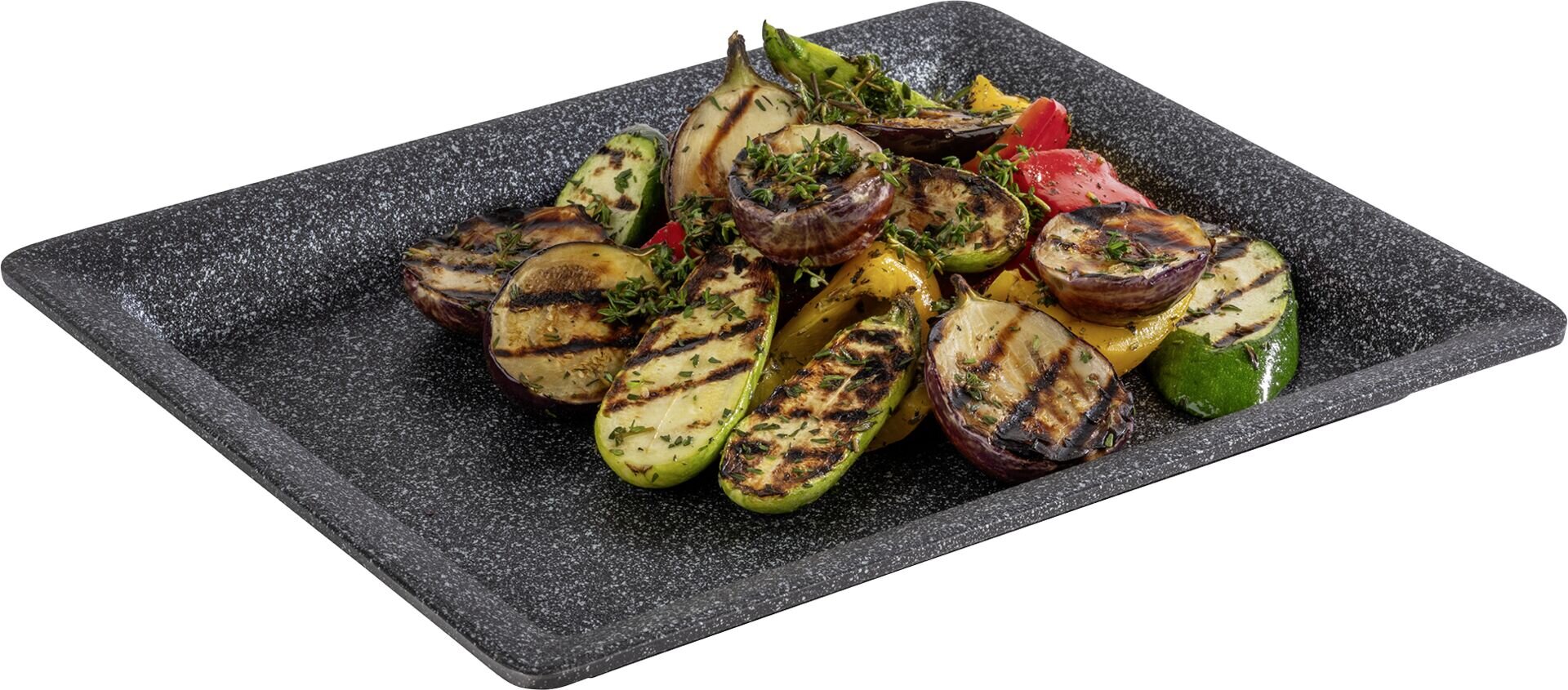Aluminiumguss, schwarz-silber, antihaftbeschichtet, spülmaschinengeeignet. Temperaturbereich ca. -30 °C bis ca. +200 °C.