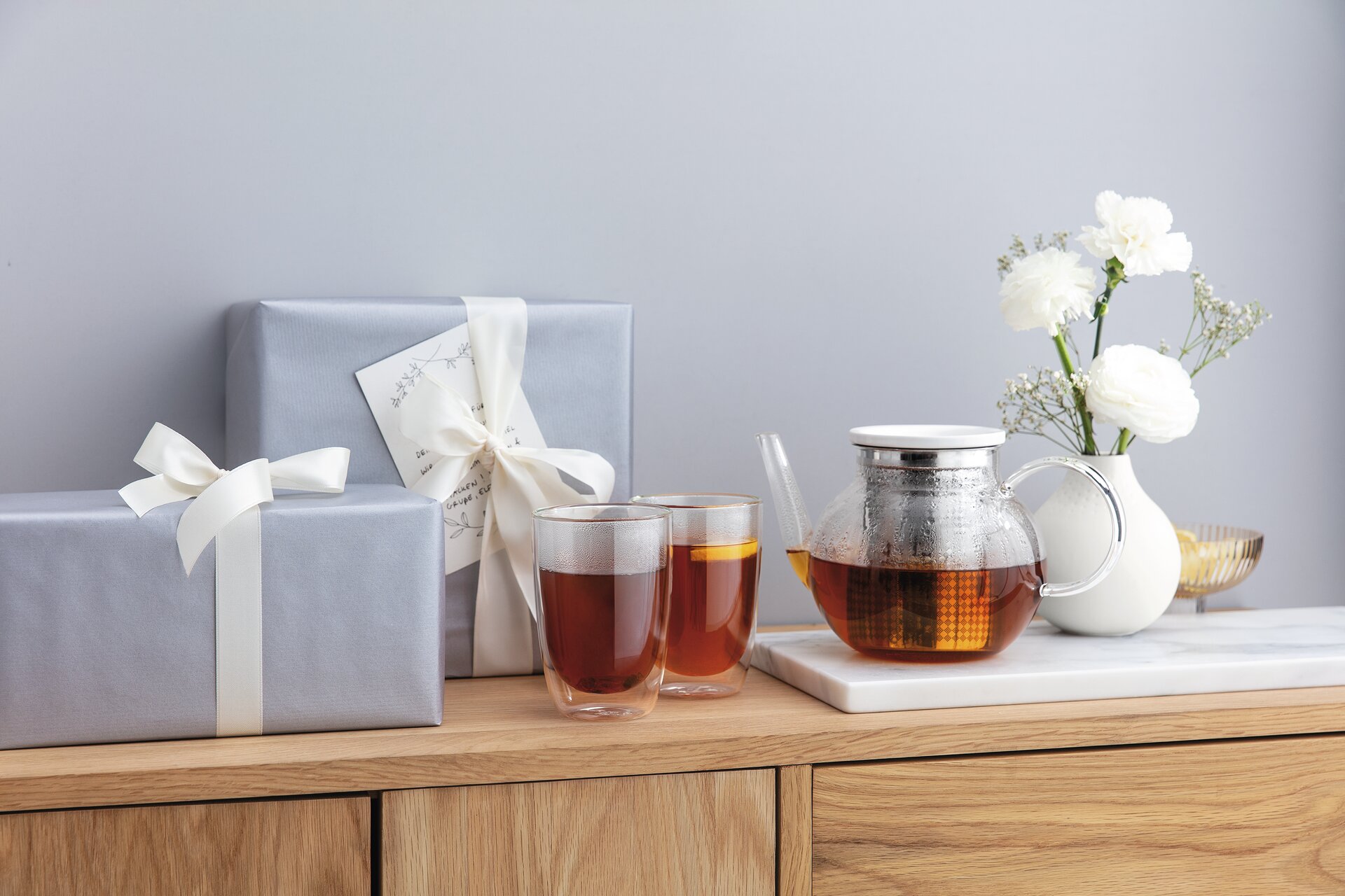Gefertigt aus hochwertigem und stabilem Borosilikatglas mit sehr guter Hitzebeständigkeit. Höchste Qualität: geschmacksneutraler und rostfreier 18\/10 Edelstahl. Spülmaschinenfest, einfache Reinigung und leichte Pflege.