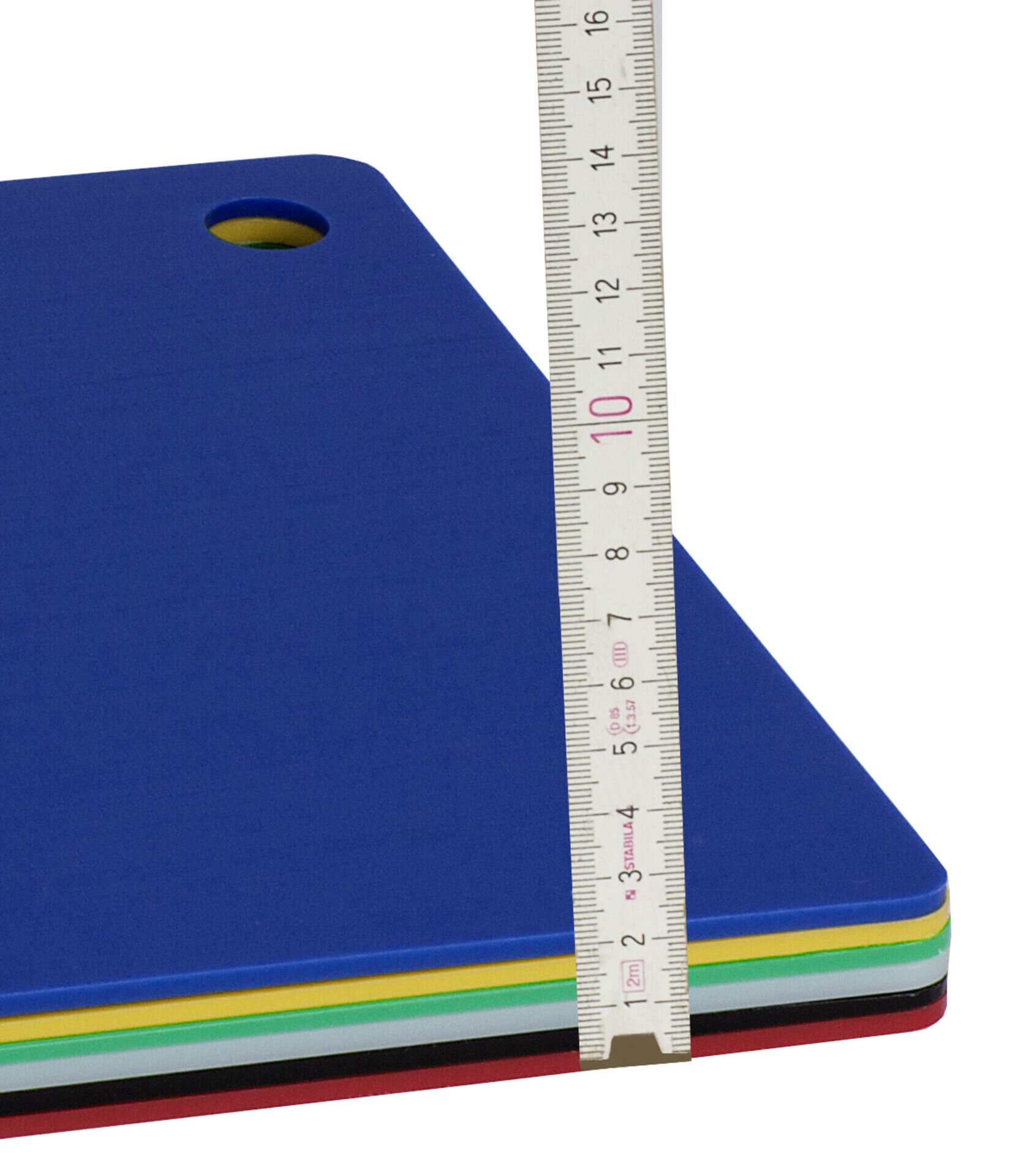 PE 500. 3 mm stark. In 6 verschiedenen Farben. Beidseitig verwendbar. Spülmaschinengeeignet bis +75°C. (Die Auflagen dürfen beim Spülen nicht geklemmt werden.)