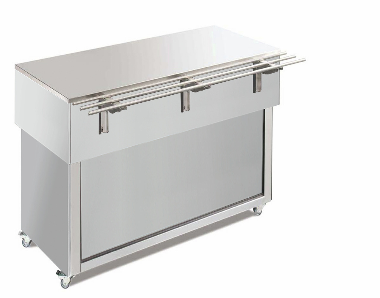 › verchromtes Stahlgestell auf Rädern