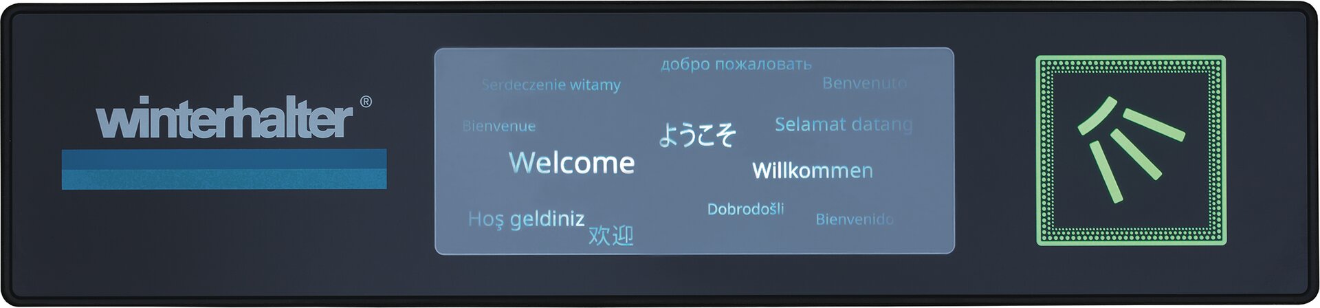 › mit QR-Code – für einfachen Zugang zur digitalen Servicewelt von Winterhalter (In Verlängerung des Displays, an der rechten Vorderseite der Maschine)