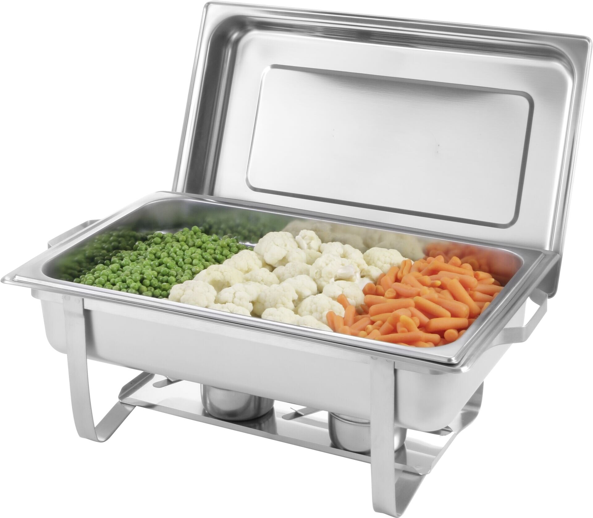 LxBxH in cm: 60x35,8x29,5 inkl. 2 Brennstoffhalter Edelstahl: 18/0, Inhalt: 9 Liter. Mit jeweils einem hochglanzpolierten, einsteckbaren Deckel, einer GN 1/1 Lebensmittelpfanne, 65 mm tief und 2 Brennpastenbehältern. Geeignet für Gastronorm Behälter bis 65 mm tief.