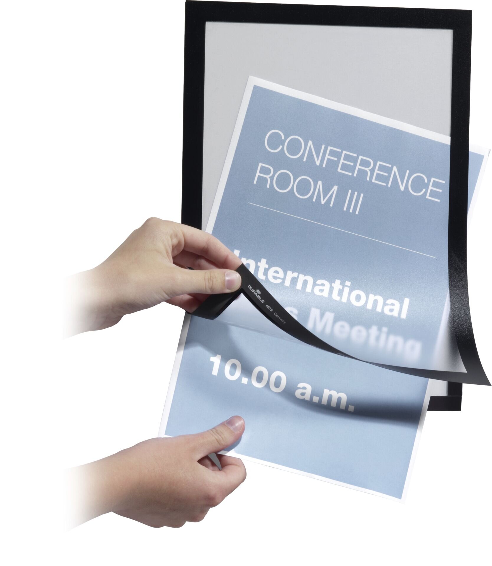 Reflexionsfreie Folie. Selbstklebend mit Magnetverschluss. Anwendung im Innenbereich. Für Informationen, die durch einen magnetischen Verschluss schnell und einfach ausgetauscht werden sollen und von beiden Seiten lesbar sind. Hält dauerhaft auf glatten Oberflächen im Innenbereich wie z.B. an Türen, Schränken, Glas und Wänden, kann von festen Untergründen wie z.B. Glas wieder entfernt werden. Die Rahmenfarbe ist auf der Vorder- und Rückseite identisch. Anwendungen sind sowohl im Hoch- als auch im Querformat möglich. Im 2er Pack.