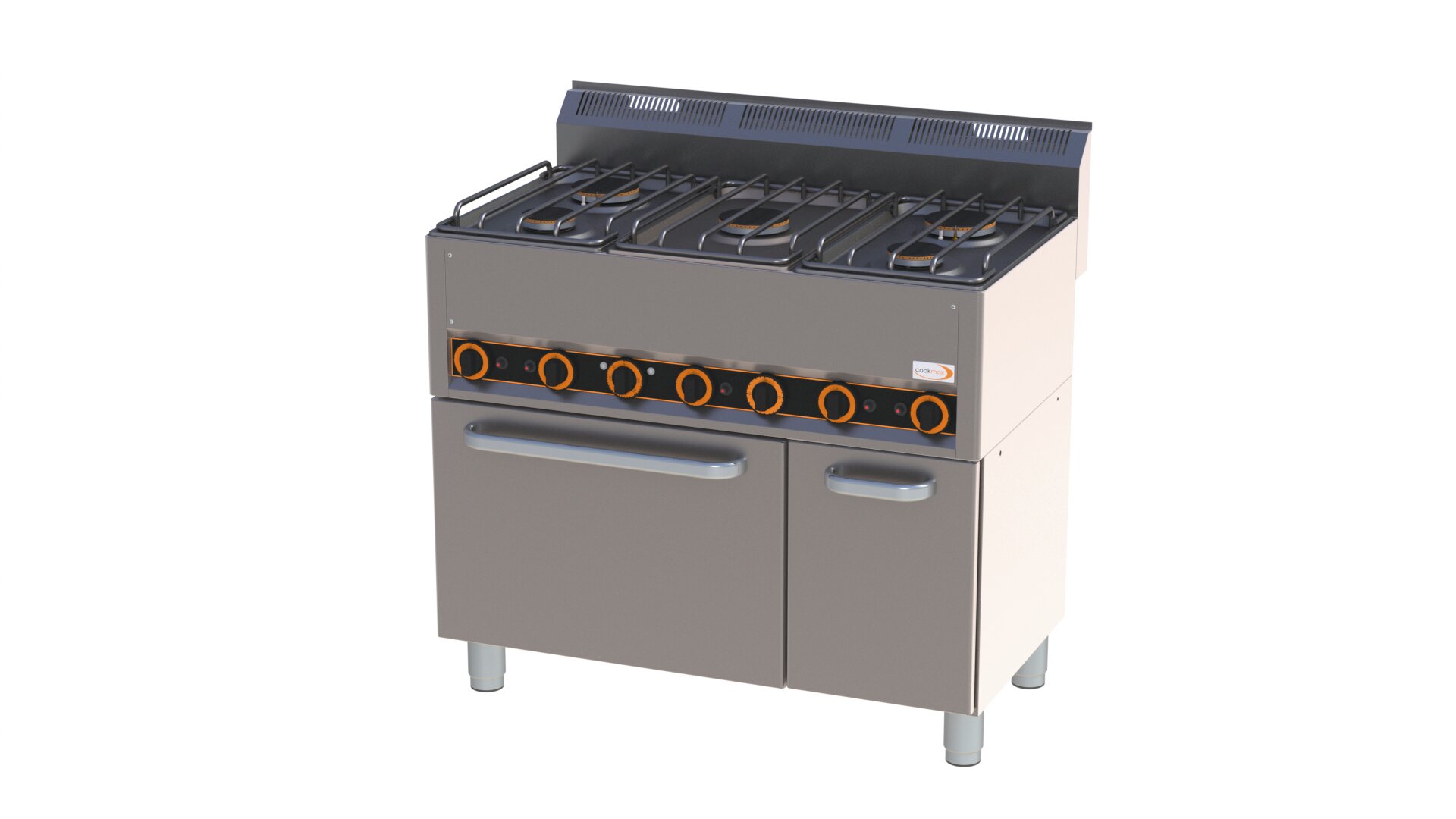 Gas-Herd 5 Brenner Heißluftofen 990 x 600 x 920 mm