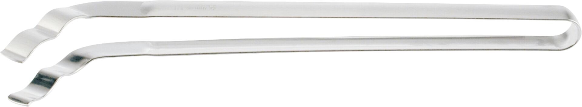 Edelstahl, aus einem Stück geformt, die gewellten Enden sorgen für sicheren Halt beim Wenden und Transportieren, spülmaschinengeeignet, Made in Germany.