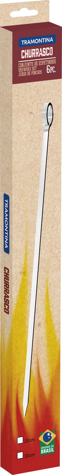 Spieß komplett aus rostfreiem Edelstahl AISI 430. Stärke: 1,5 mm, Breite: 4 mm, rosten nicht, lebensmittelneutral, rückstandslose Reinigung - spülmaschinengeeignet. Länge von der Spitze bis zur Öse: 28,5 cm. 6er Pack.