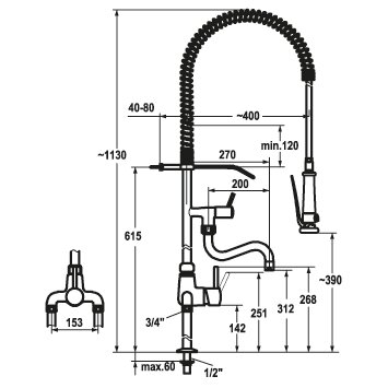 Hebelmischer mit Geschirrwaschbrause AD 153 A 200 B 270 Schwenkauslauf