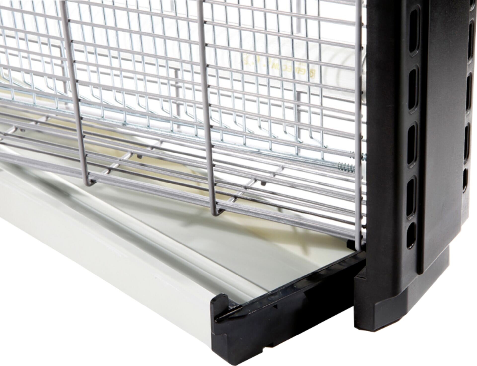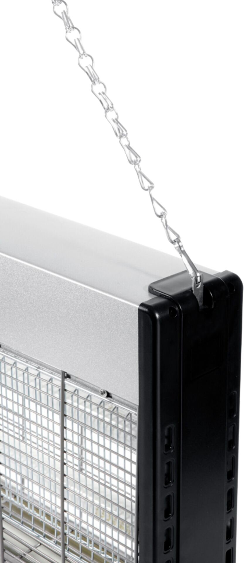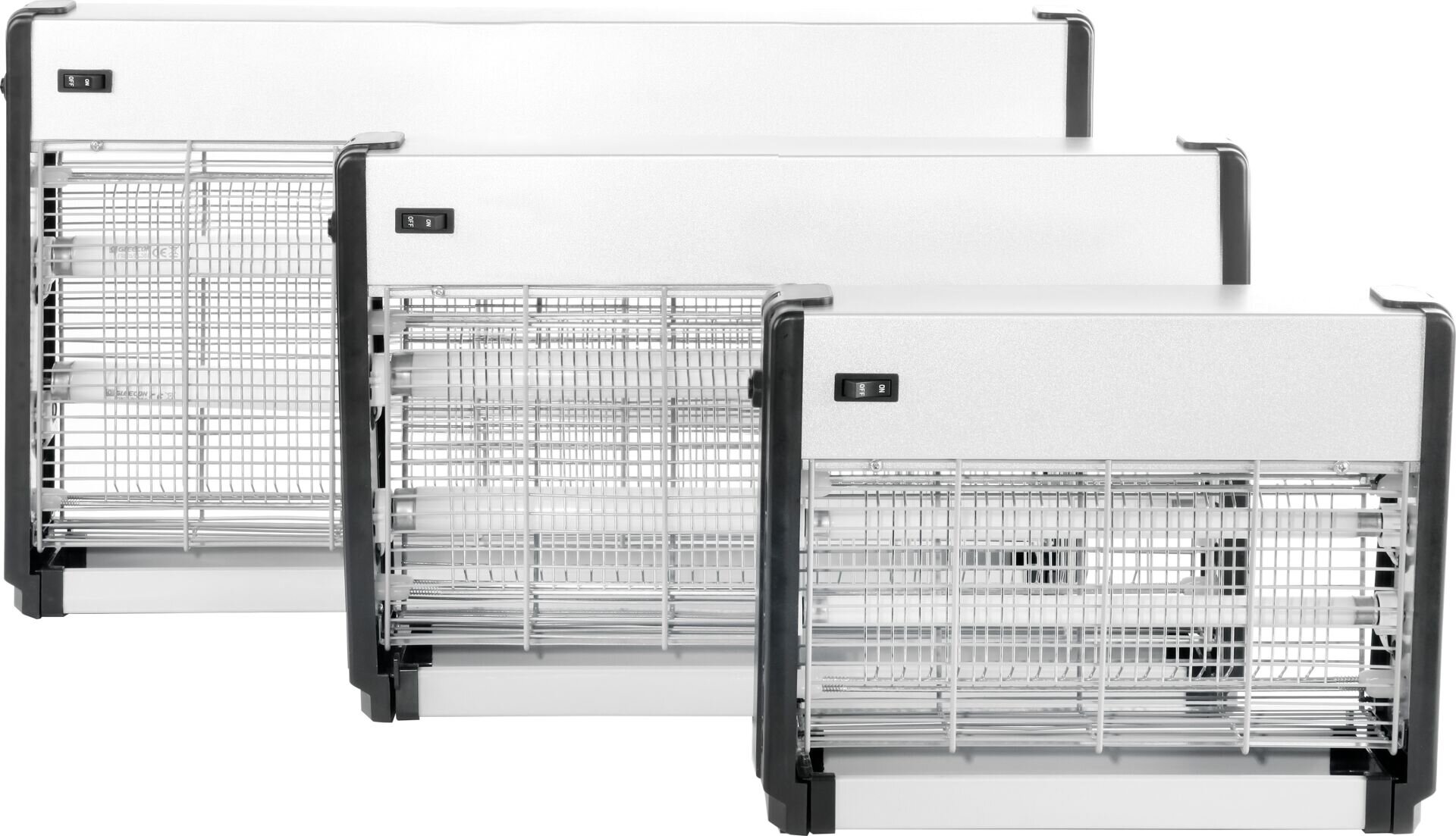 Elektronischer Insektenvernichter mit einem Gehäuse aus einer speziellen Aluminiumlegierung und feuerfestem ABS-Kunststoff. Einfache Reinigung durch herausnehmbare Schublade. 2 UV-A-Leuchtstoffröhren. Gitterspannung 2500 V. Anschlusswert 230 V. Als Decken- oder Standgerät einsetzbar. Nur zur Verwendung im Innenbereich. BxTxH in cm: 48,5x9,0x31,0 Wirkungsbereich: 100 m² Leistung in W: 36 WEEE-Reg. Nr. WE 61118672