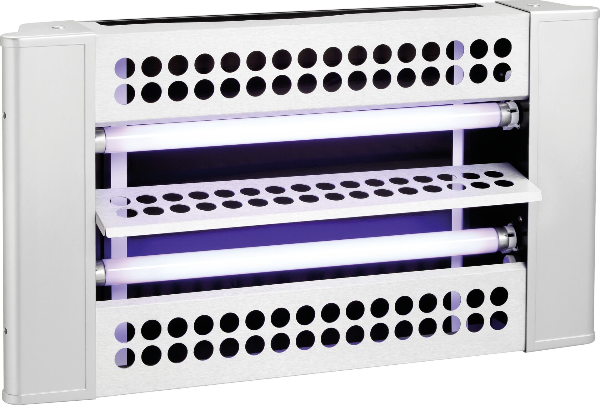 Gehäuse aus Kunststoff und Aluminium. 2 Röhren: 2x15 W. Wirkradius 10 m. Zur Wandmontage oder als Standgerät. Insekten werden durch das UV-Licht angelockt und bleiben auf der dahinter angebrachten Klebefolie haften. 2 UVA-Leuchtstoffröhren. Inkl. 2 Klebefolien und Befestigungsmaterial. Anschlusswert: 230 V/30 W.