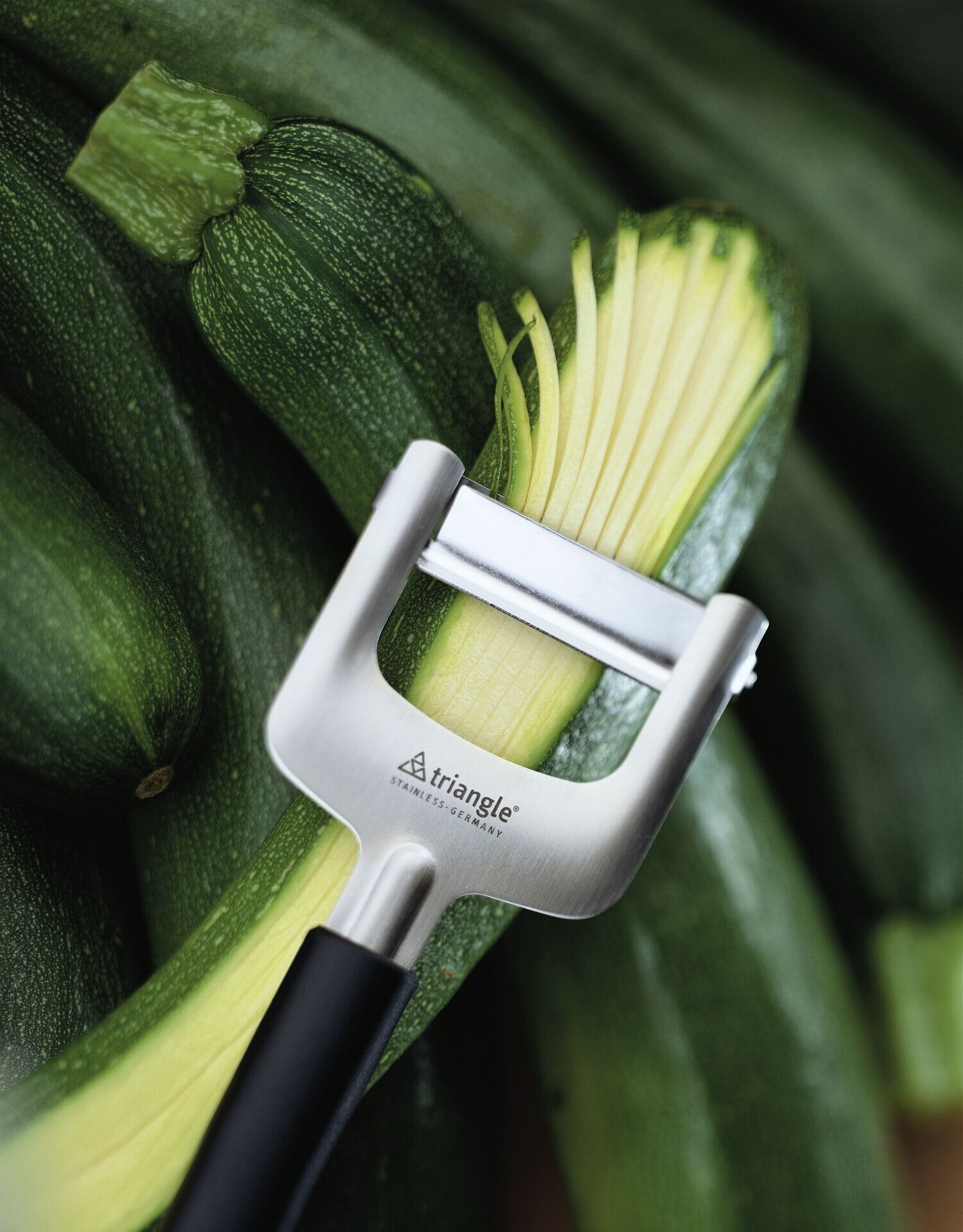 Edelstahl 18/10, PA glasfaserverstärkt, schneidet 3mm dünne Streifen. Spülmaschinengeeignet.