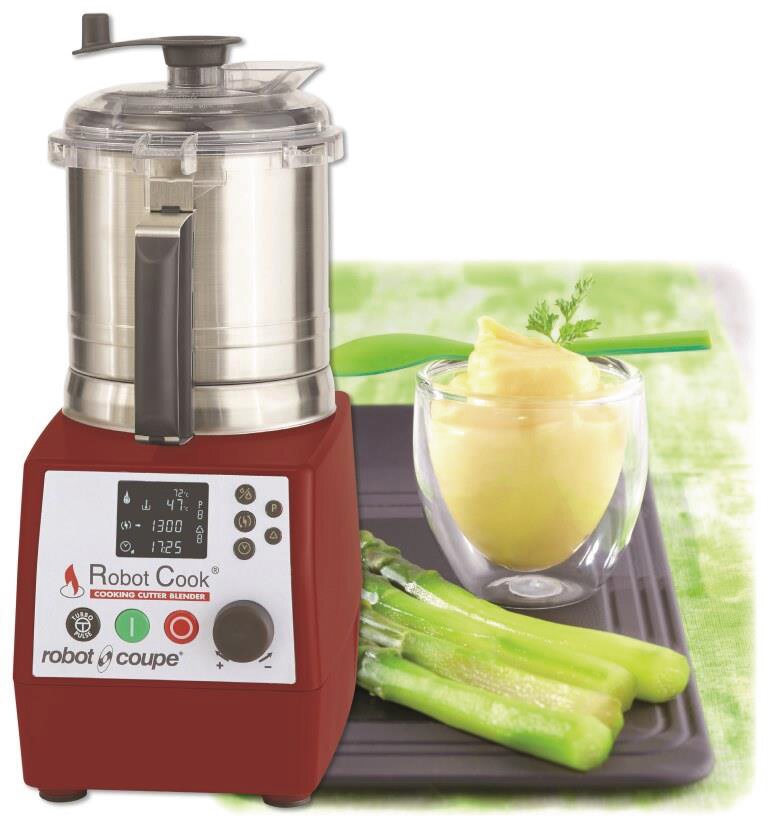 Der Robot Cook regt die Fantasie der Küchenchefs an und ist die erste professionelle, kochende Küchenmaschine. Er ist der ideale Helfer bei der Erfindung und Verwirklichung warmer und kalter, herzhafter und süßer Gerichte. Der Robot Cook vereint Technologie mit Innovation und ist somit die ideale Lösung für die optimale Nutzung der Zeit, bei der Zubereitung der Gerichte. Mit ihm lässt sich perfekt emulgieren, zermahlen, pürieren, hacken, vermischen und kneten.