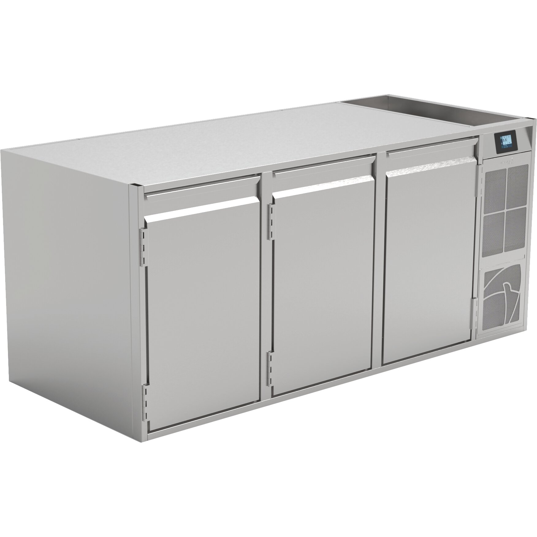 › 3 x Volltür, CNS, frontbündige Tür- und Ladenblätter, selbstschließend, Scharnier für Türoffenstellung (60°, 90°, 120°, 180°), Rahmenheizung, CNS-Griffleiste, Türanschlag links | links | rechts, Magnetdichtung (werkzeugfrei wechselbar)