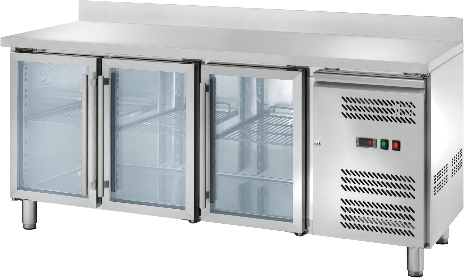 Kühltisch 417 l GN 1/1 mit 100 mm Aufkantung, 3 Glastüren