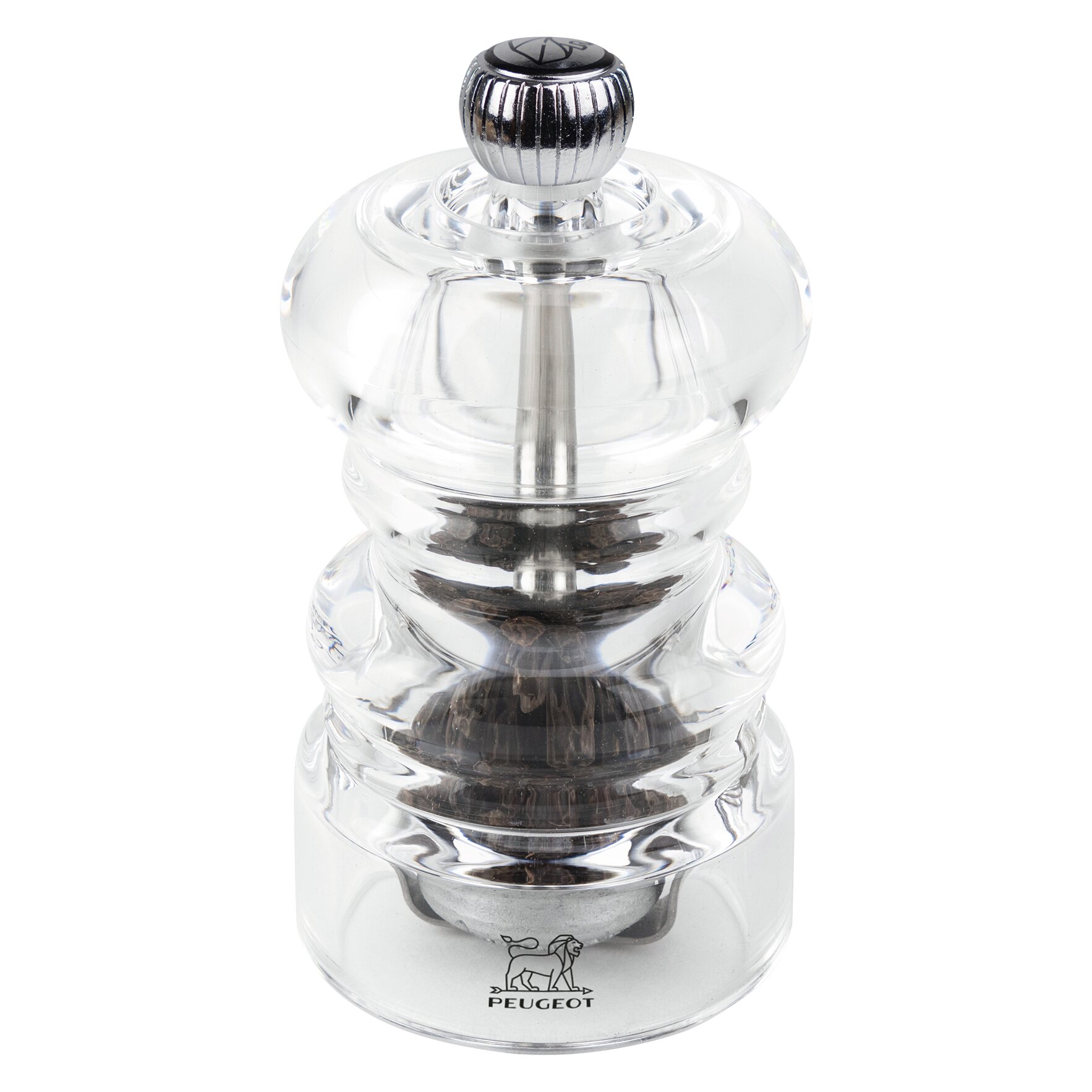 Generöse Formen, die unter dem visuellen Effekt der Acryl-Transparenz verblassen. Pfefferkörner wie Perlen in ihrem Schmuckkästchen. Die Nancy Pfeffermühle von Peugeot ist in erster Linie eine Augenweide und ein schickes Muss auf dem Tisch. Ein Einstellknopf oben auf der Mühle erleichtert die maßgerechte Regulierung des Mahlgrades, von ganz fein bis ganz grob. In der Küche wird sie zum perfekten Produkt für Genießer.