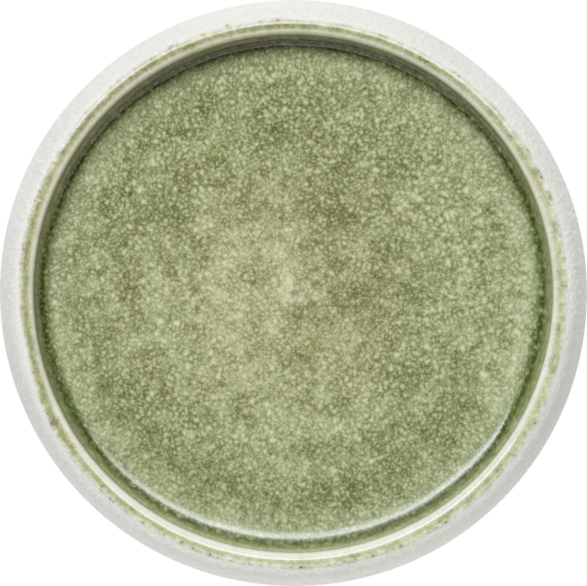 Porzellan. Tellerspiegel und Schüsselinnenseite mit glatter, glänzender Glasur in natürlichen Grüntönen. Von außen besticht die Serie durch die ungleichmäßig strukturierte, mattweiße Glasur. Die kantige Form der Bowls, der erhöhte Rand der Teller und der unregelmäßige Farbverlauf sind weitere Besonderheiten und unterstreichen die Einzigartigkeit jedes Stücks dieser modernen Serie. Die Bowls lassen sich stapeln und mit den Tellern gut als Deckel oder Unterteller kombinieren. Mischsortierung. Spülmaschinengeeignet.