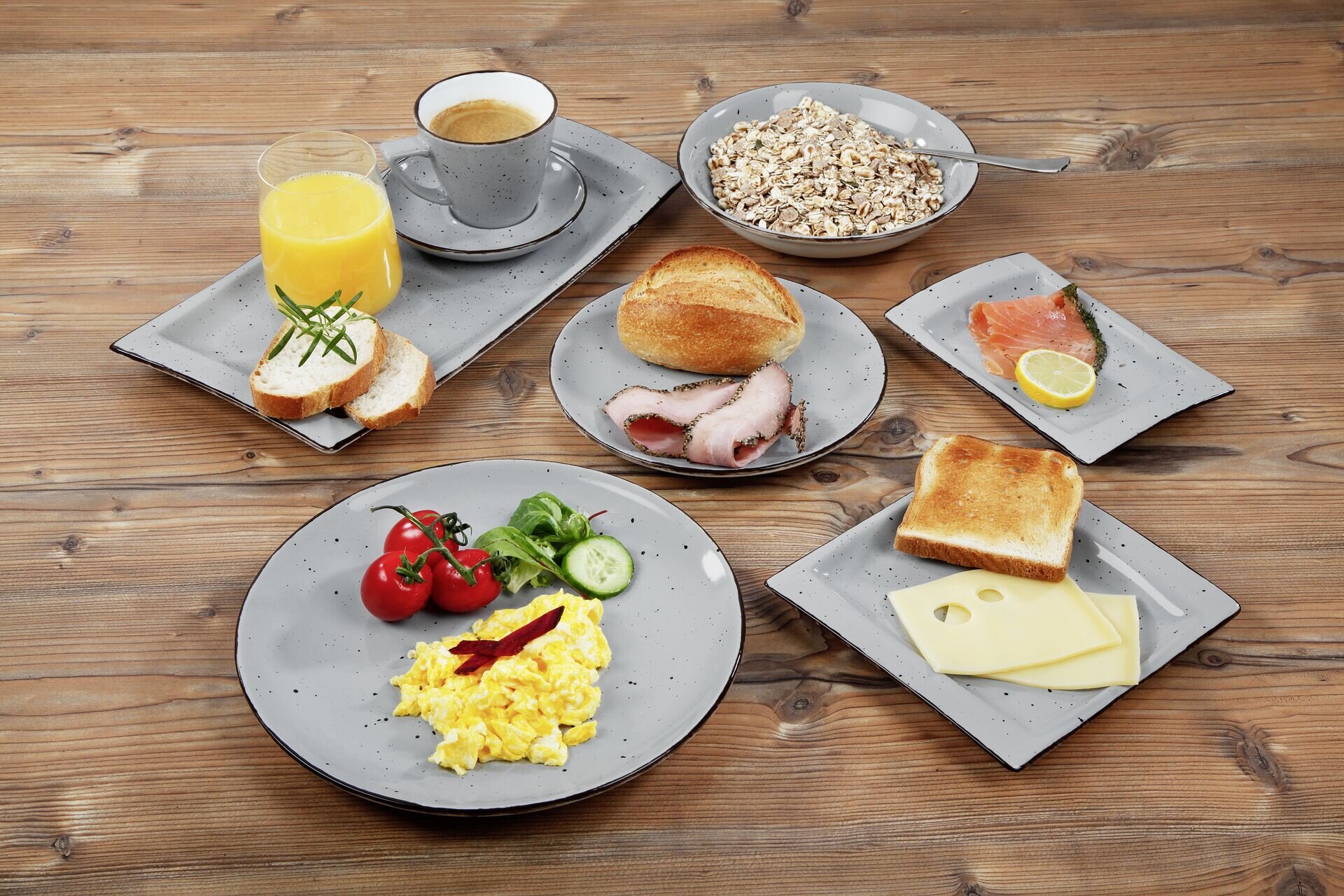 Porzellanserie "Granja" grau Teller flach Coup-Form, 25,7 cm
