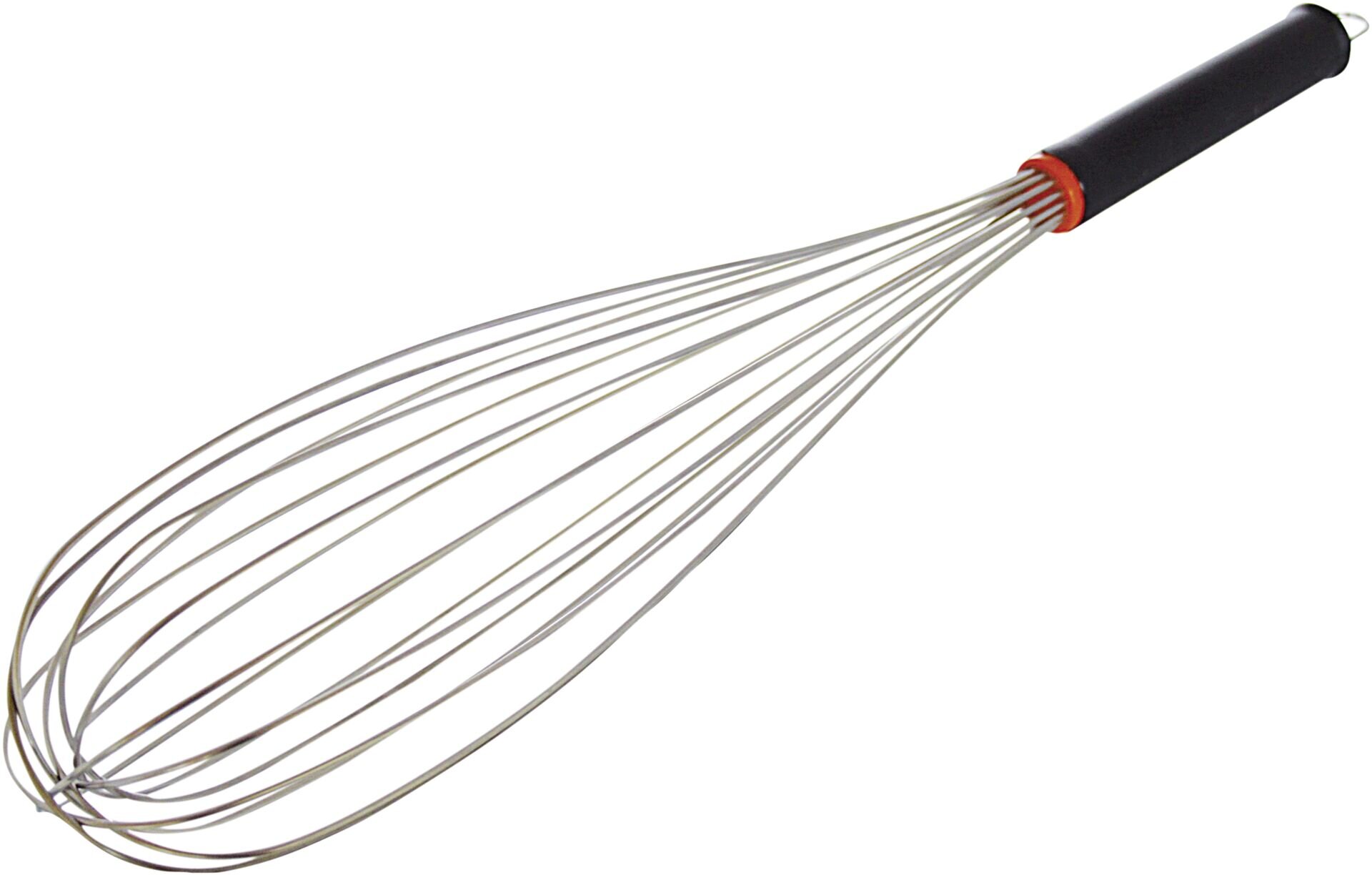 Rührbesen mit 16 Edelstahl-Drähten und schwarzem, thermoplastischen Griff mit Aufhängeöse. Hitzebeständig bis 200°C. Spülmaschinengeeignet! Länge in cm: 45