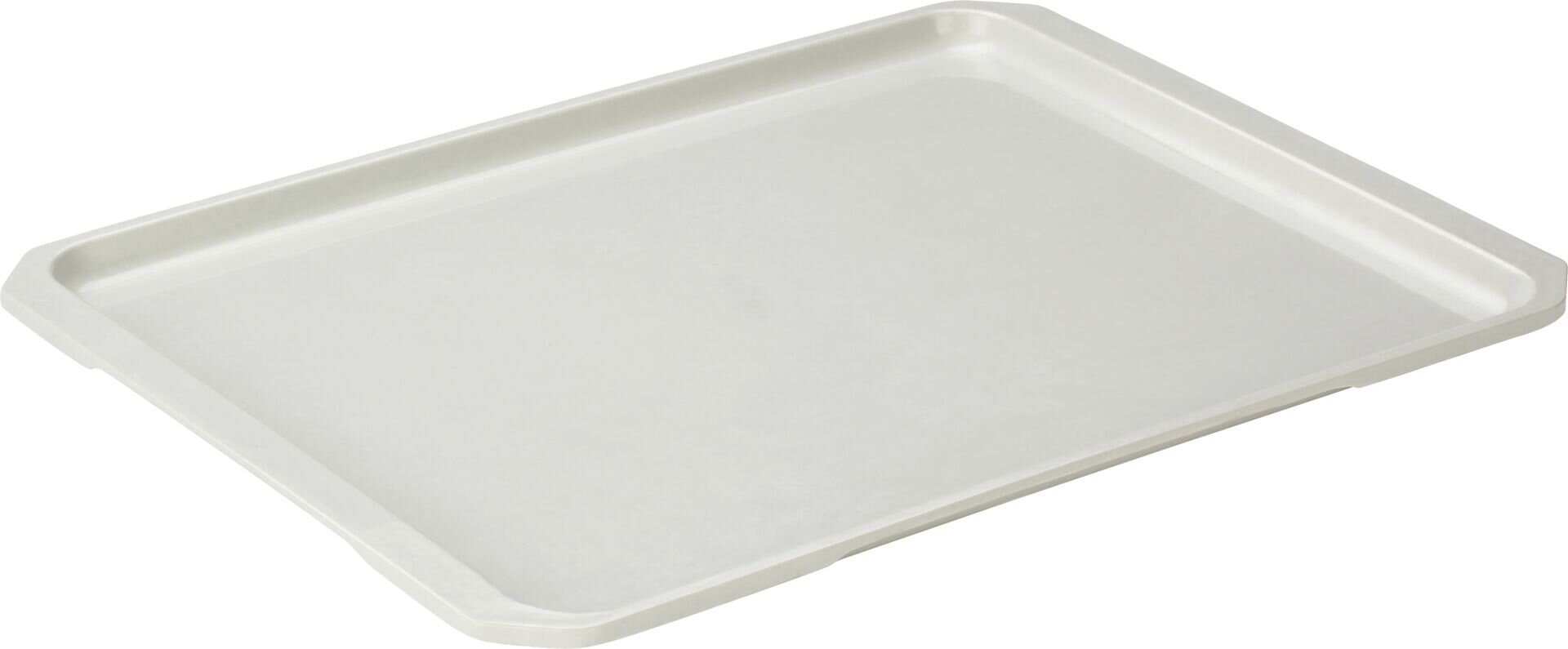 Rechteckiges Polyestertablett, fiberglasverstärkt, lichtgrau. Temperaturbeständig von -50° C bis +140° C. Spülmaschinengeeignet. Desinfizierbar. Mit Rand- und Eckenverstärkung. Mit Stapelnocken.