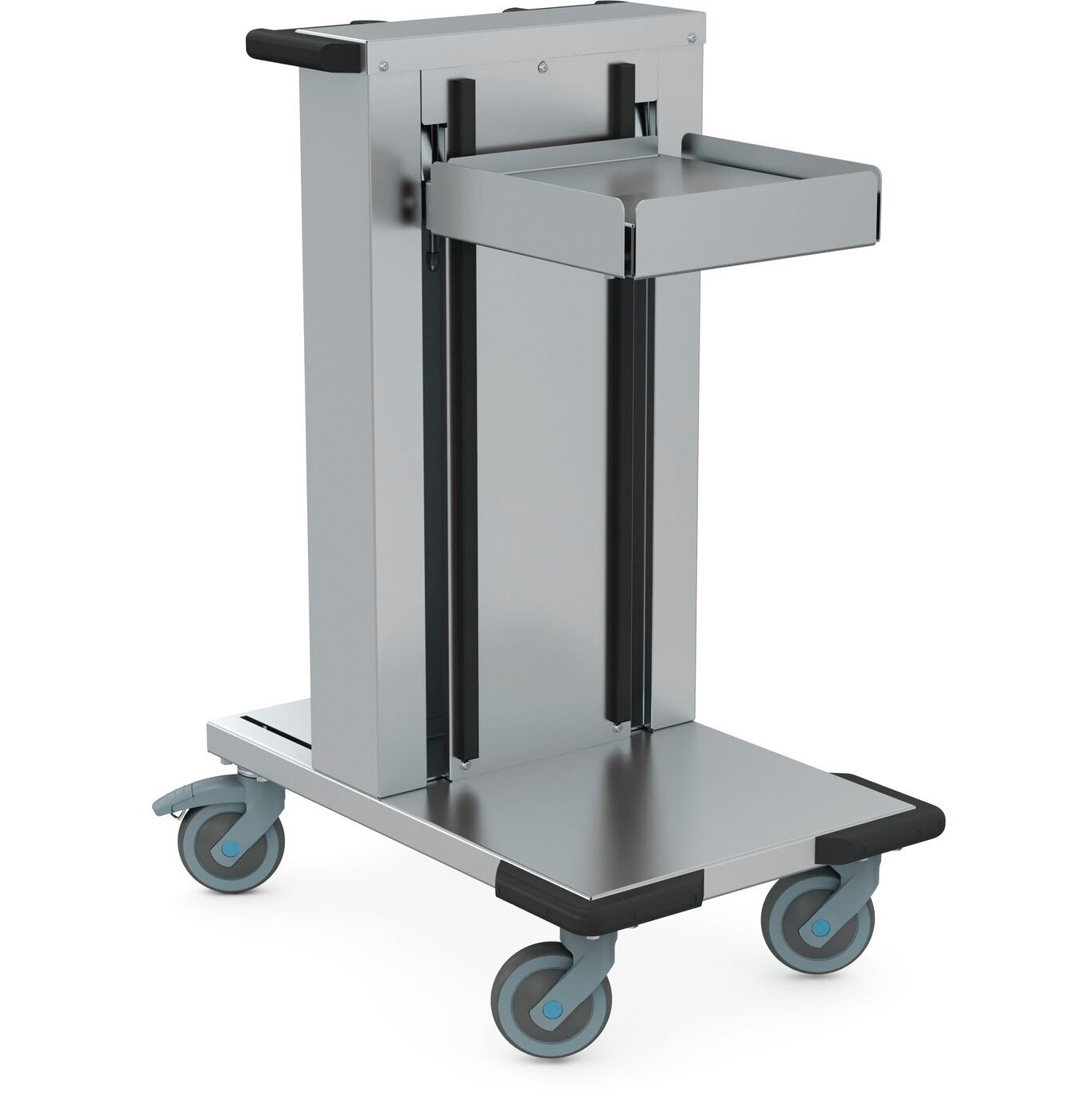 Offener Tablettstapler mit höhenverstellbarer Plattform zur Längs- oder Breitstapelung von Tabletts unterschiedlicher Formate und Größen von Spülmaschinen.