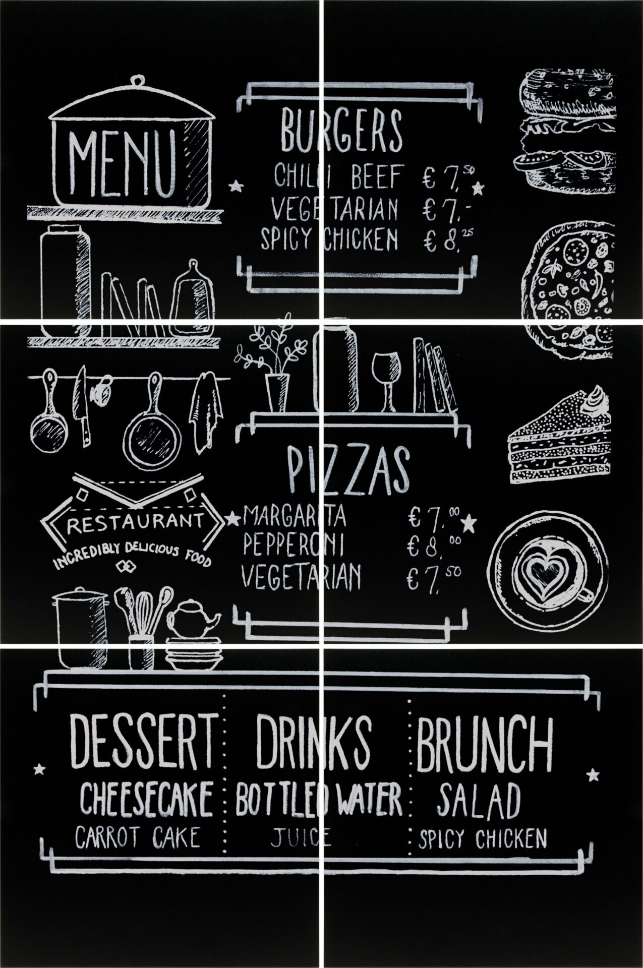 Rahmenlose Tafeln inkl. doppelseitigem Klebeband auf der Rückseite. Vielseitig einsetzbar - individuell aufhängbar. Tafeln sind beschriftbar mit Kreidemarkern aus unserem Katalog. Im 6er Pack.